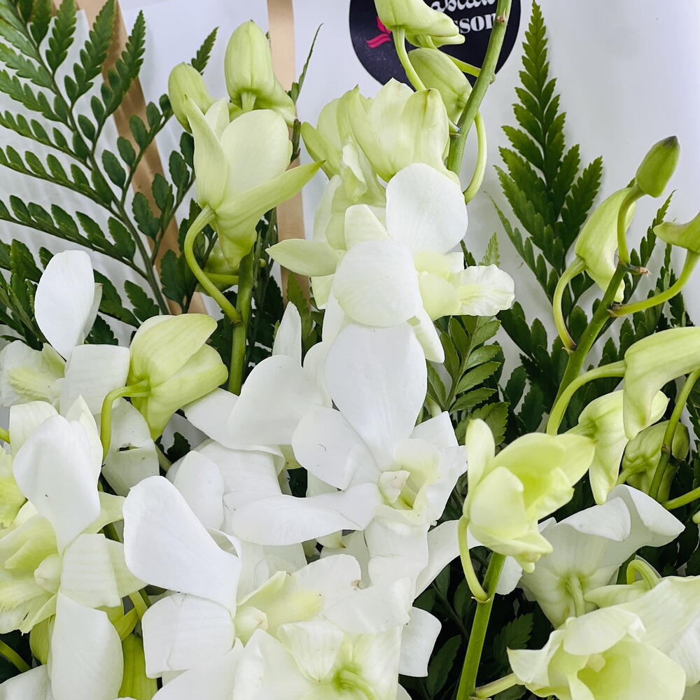 orchidées dendrobium blanches - 10 pce fougère cuir - 4 pce