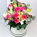 Pink rose - 10 pce tige de lis blanc - 3 pce eucalyptus et tige de remplissage - 3 pce