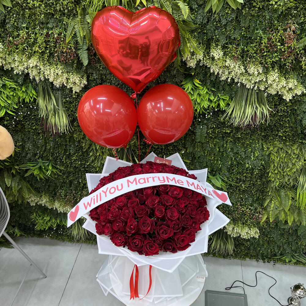 ballons rouges - 2 pce red roses - 101 pce ballon rouge en forme de cœur - 1 pce veux-tu m'épouser, sash ? - 1 pce