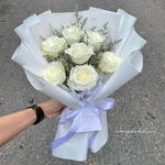 Ce magnifique bouquet de roses blanches est composé avec soin pour créer une ambiance sereine et raffinée. La fraîcheur des roses blanches se distingue par leur charme naturel, tandis que l'emballage minimaliste lui confère une allure épurée et élégante. Idéal pour les anniversaires, les marques d'affection, les excuses ou les moments où les mots manquent, ce bouquet exprime la beauté dans la simplicité. 7 roses blanches fraîches – Symboles de pureté, de paix et de sincérité, soigneusement sélectionnées pour un rendu élégant et raffiné. 2 feuilles de papier d'emballage de qualité supérieure – Délicatement superposées pour sublimer l'aspect doux et raffiné du bouquet. 1 ruban élégant – Noué avec délicatesse pour une finition charmante. Largeur : 20 cm – Un design compact et harmonieux. Hauteur : 35 cm – Une hauteur idéale pour une allure gracieuse et présentable.