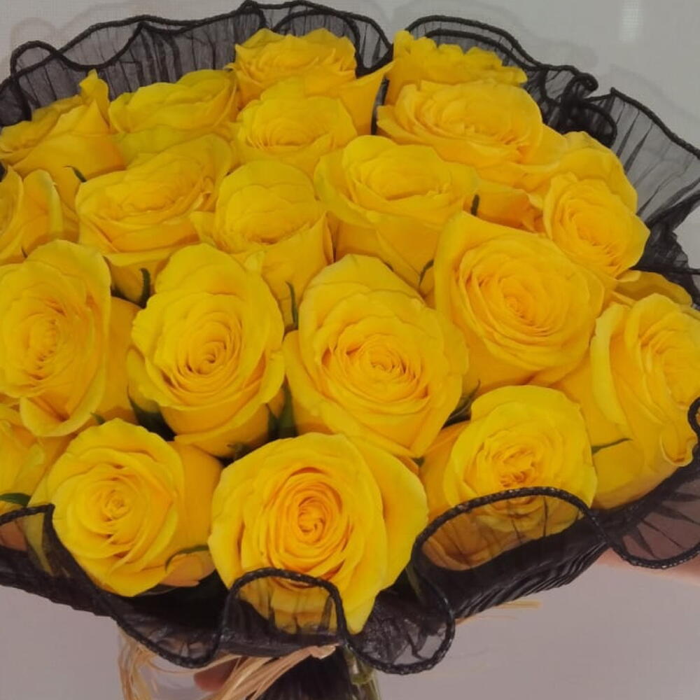 Yellow rose - 20 pce emballage en filet noir - 1 pce