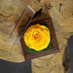 Mousse - 1 pce rose éternelle jaune - 1 pce boîte carrée en bois - 1 pce