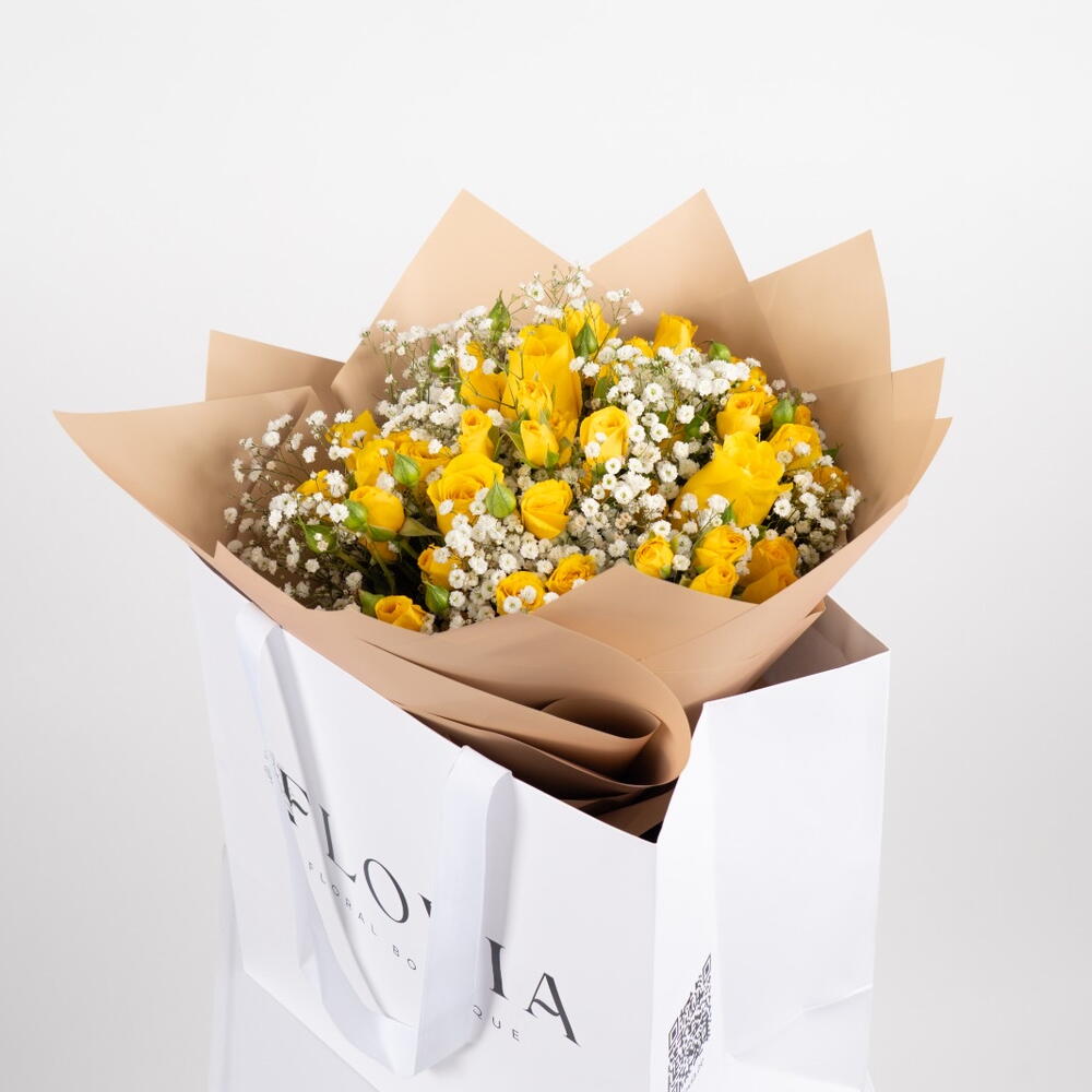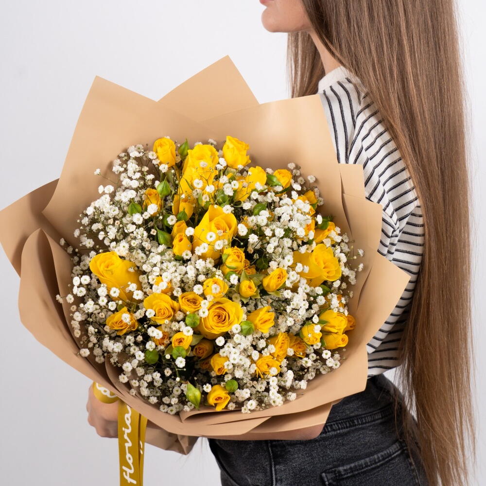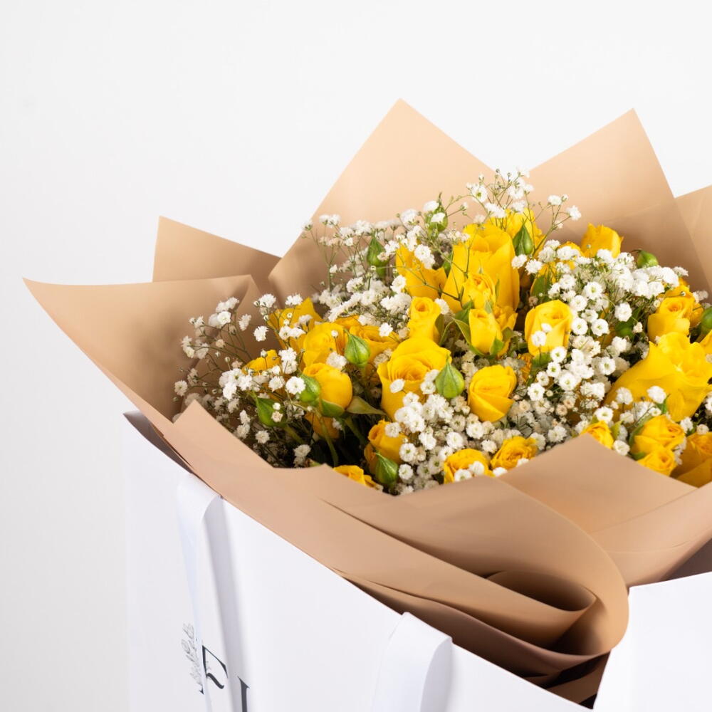 gypse - 10 pce spray roses - 18 pce roses jaunes - 5 pce