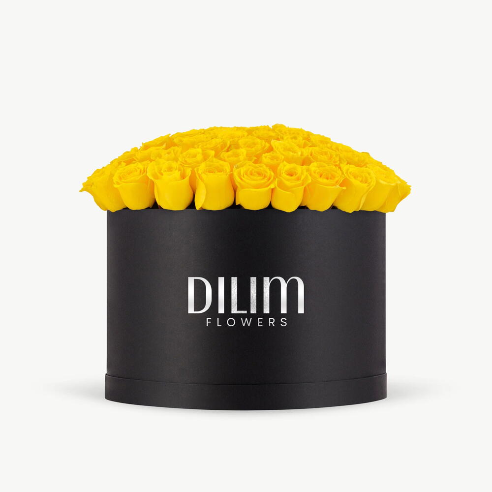 Discover the unparalleled elegance radiating from our Flowers in a Box, tastefully arranged with seventy vibrant yellow roses. Each meticulously selected bloom promises to bring a ray of sunshine into your spaces, exuding an aura of warmth and joy. A perfect statement of love, friendship, and appreciation, this artful arrangement is designed to impress and bring delight. Experience the mesmerizing beauty and gentle aroma of these yellow roses – a charming box of happiness waiting to be unboxed.