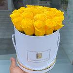 Lumineux et gai, cet arrangement de roses jaune vif dans une élégante boîte à chapeau blanche est le moyen parfait de partager joie et positivité. Les roses jaunes sont un symbole intemporel d'amitié, de chaleur et de bonheur, ce qui fait de ce bouquet un choix idéal pour les anniversaires, les félicitations ou simplement pour remonter le moral de quelqu’un. Le design épuré et minimaliste de la boîte blanche met en valeur la fraîcheur et l'éclat des fleurs, créant un cadeau à la fois élégant et qui remonte le moral. Pour conserver leur fraîcheur, brumisez légèrement les roses chaque jour et conservez-les dans un endroit frais, à l'abri de la lumière directe du soleil.