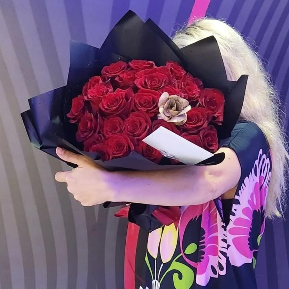 Roses rouges premium 30 tiges Une seule rose séchée de couleur dorée incluse au centre