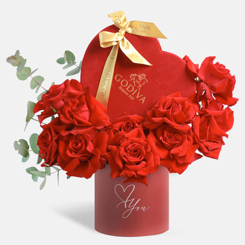 Eucalyptus - 1 pce chocolat Godiva - 12 pce red roses - 11 pce