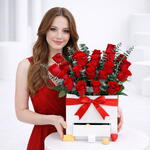 Eucalyptus - 8 pce chocolats - 100 g boîte carrée blanche - 1 pce red roses - 21 pce