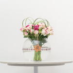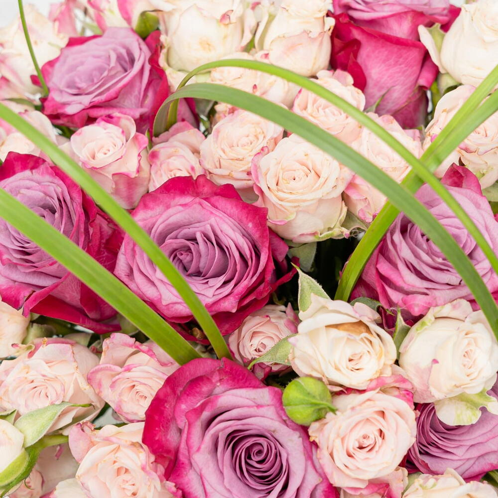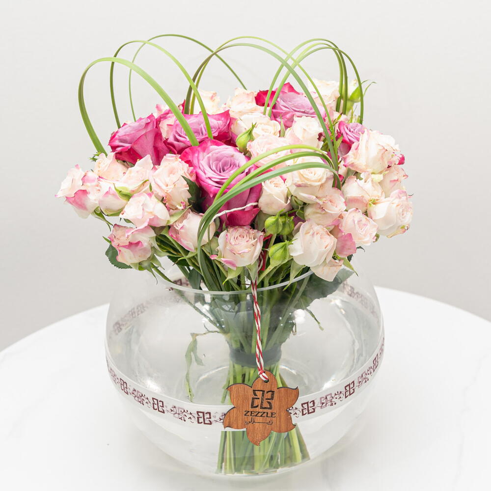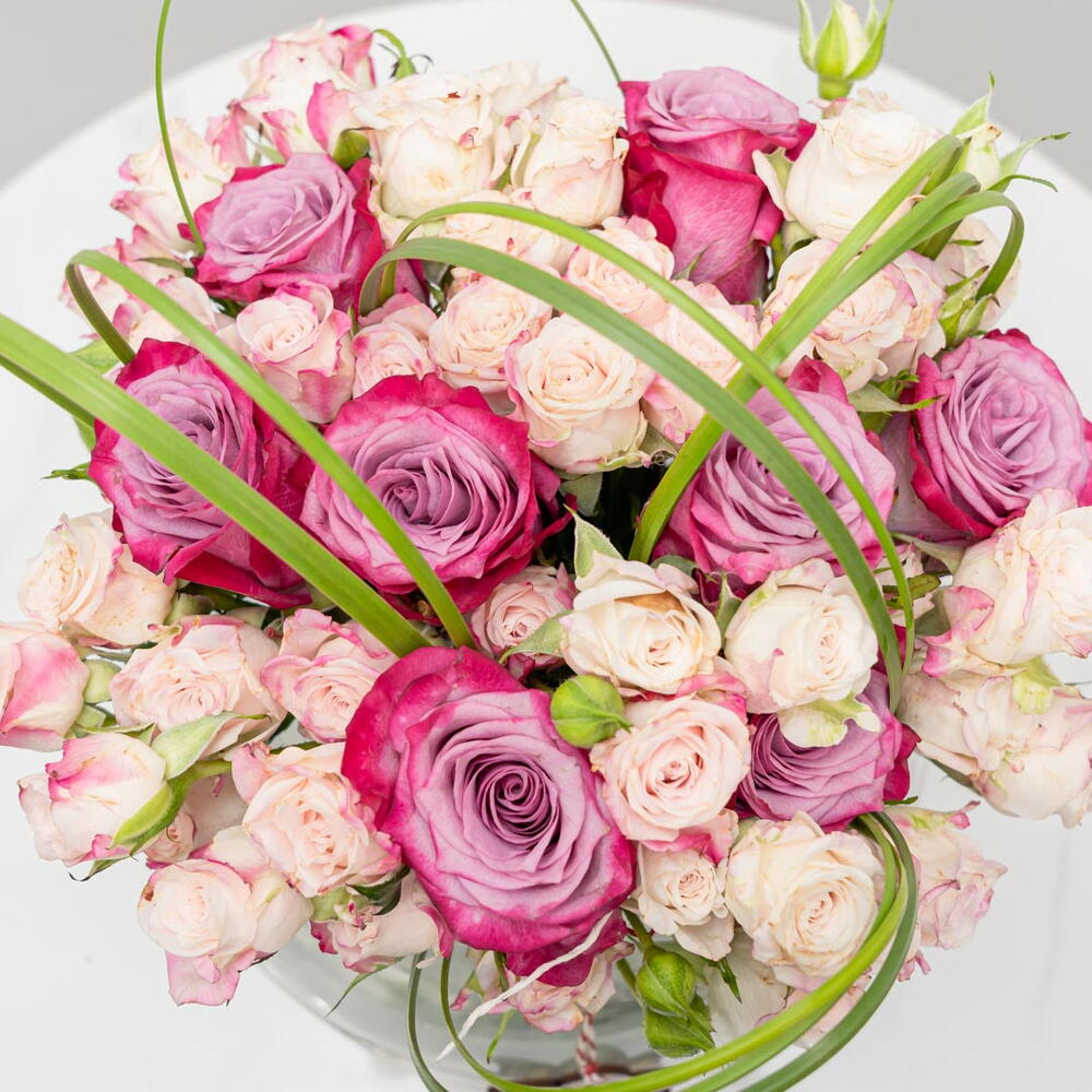 Plongez dans le charme envoûtant de notre composition florale d'intérieur. Cette superbe composition comprend 15 délicates mini-roses roses, associées à 10 majestueuses roses violettes, magnifiquement disposées dans une élégante coupe 20D. Conçue pour rehausser tout intérieur d'une touche d'élégance et de sérénité, cette composition florale est un ajout parfait et raffiné à votre décoration.