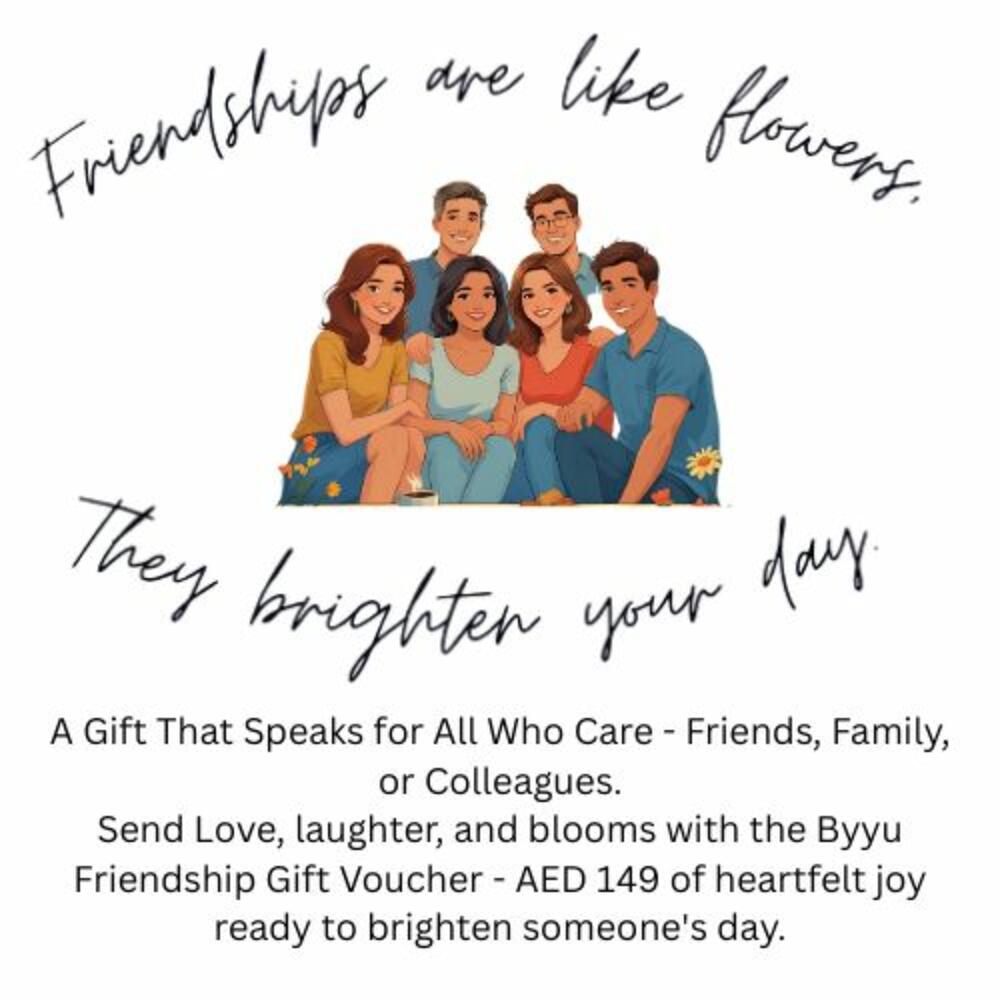 🎁 Bon cadeau Amitié de 149 AED 🎁 Célébrez les liens qui comptent, qu'il s'agisse d'un ami, d'un membre de votre famille, d'un cousin ou d'un collègue, avec notre bon cadeau numérique Byyu Flowers de 149 AED. Ce cadeau attentionné permet à votre proche de choisir ses fleurs préférées, répandant joie et chaleur à chaque pétale. 💡 Fonctionnement : Ce bon est numérique et est délivré instantanément. Le destinataire peut l'échanger contre n'importe quel produit d'une valeur de 149 AED dans notre boutique. Des frais de livraison peuvent s'appliquer, mais pas d'inquiétude : nous vous les rembourserons une fois la commande passée !
