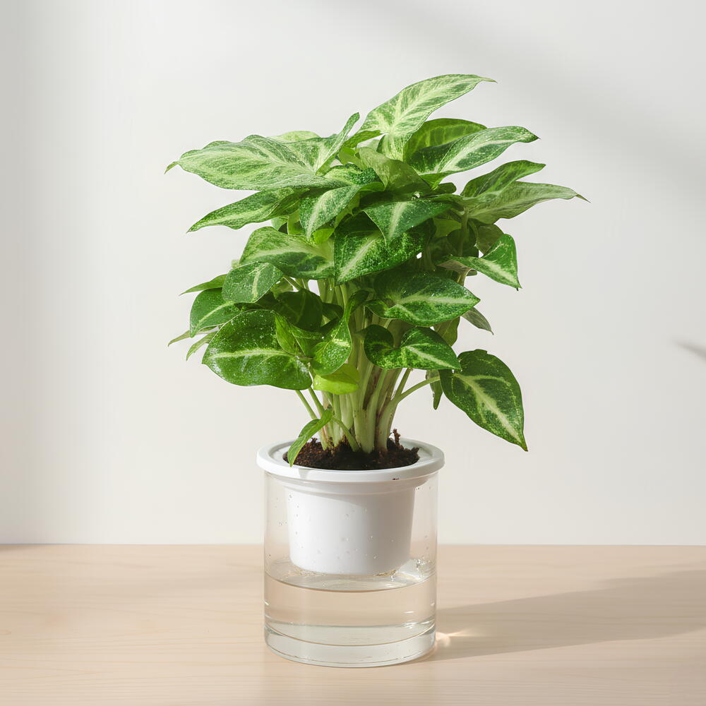 Lumière: Vive, indirecte; tolère une luminosité moyenne Arrosage: Entretien réduit grâce à un système d'auto-arrosage Sol: Substrat léger et bien drainant Humidité: Une humidité intérieure moyenne suffit Température: Plage idéale 18–30°C (65–86°F) Entretien: Coupez les pousses jaunes ou étiolées pour conserver une forme buissonnante Engrais: Engrais liquide pour plantes d'intérieur une fois par mois pendant la saison de croissance