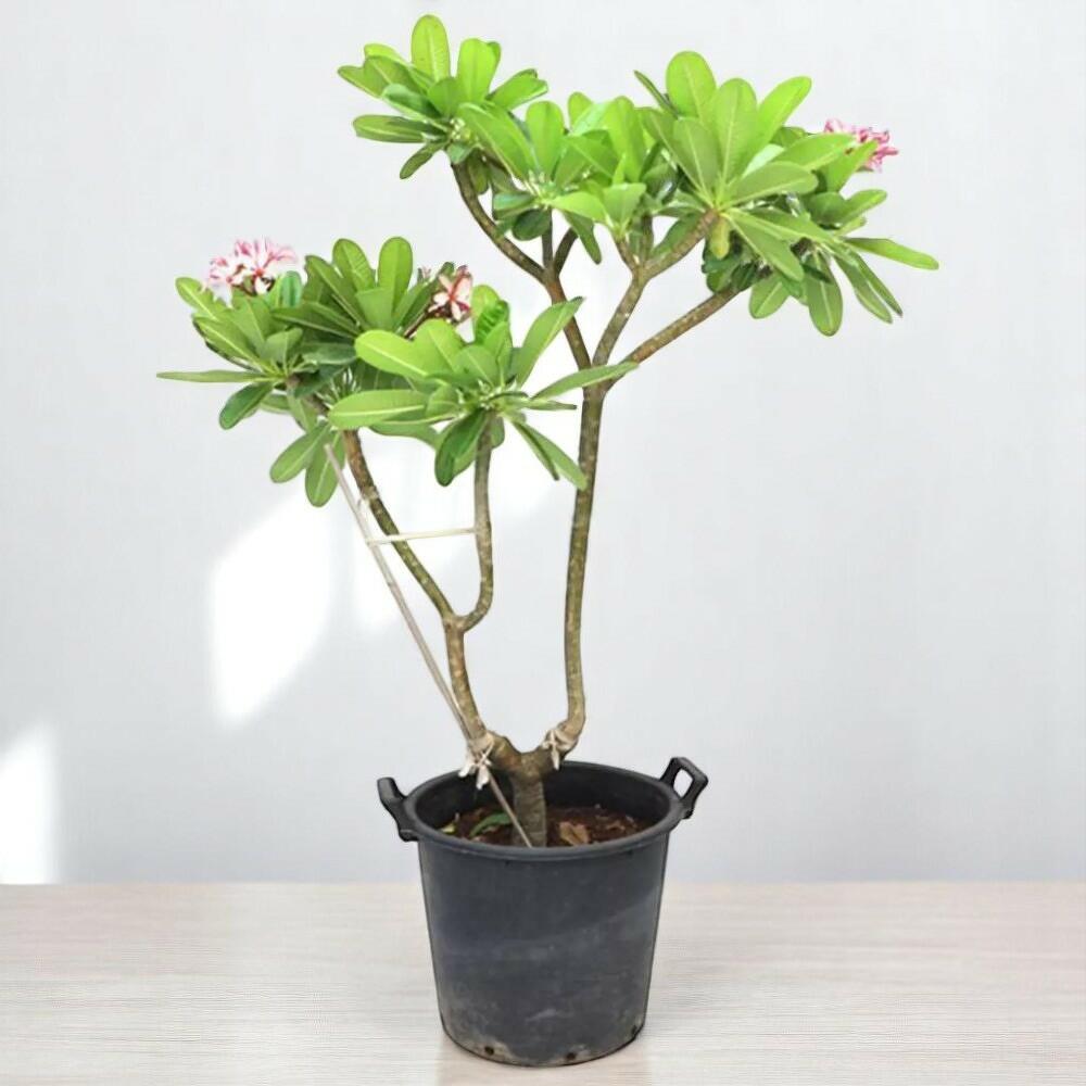Plumeria obtusa « Frangipanier » ou « Arbre du Temple » est un grand arbuste caduc ou un petit arbre étalé aux tiges robustes, peu ramifiées et très épaisses. Ses feuilles lancéolées, spiralées, légèrement ridées, d'un vert intense, atteignent 30 cm de long et sont généralement finement velues en dessous. Des fleurs blanches en forme de plateau, aux yeux jaunes, de 6 cm de diamètre, apparaissent en panicules terminales de l'été à l'automne. Plumeria est un genre de onze espèces d'arbustes et de petits arbres de la famille des apocyn, originaire d'Amérique tropicale, du Brésil au Mexique et aux Caraïbes. Sous les noms communs de plumeria et de frangipanier, quelques espèces et hybrides sont cultivés comme plantes ornementales dans les régions tropicales et subtropicales du monde entier pour leurs fleurs attrayantes et parfumées.