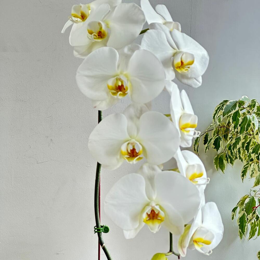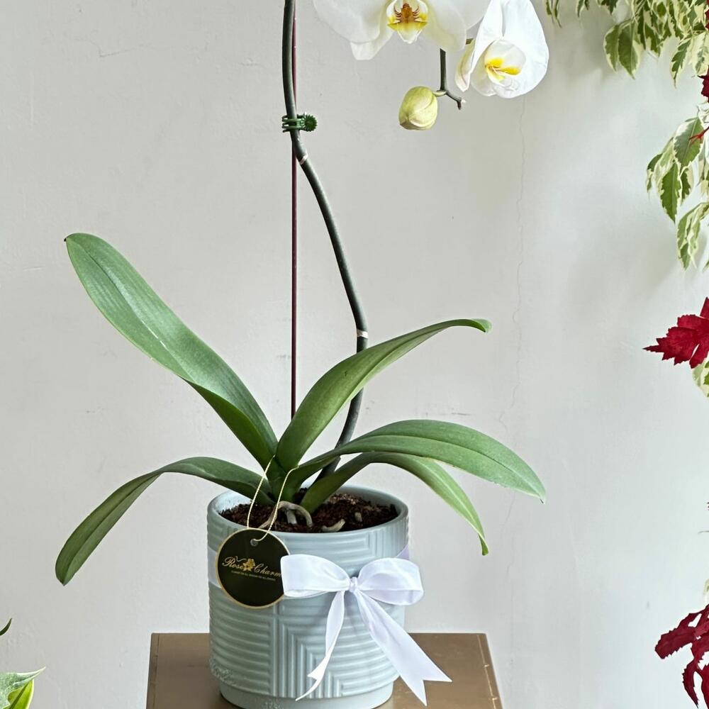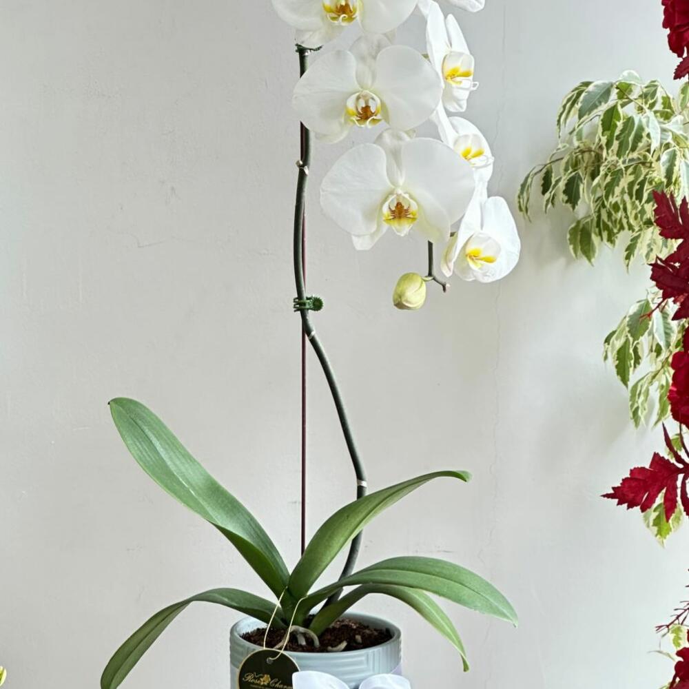 Invitez la beauté de la nature dans votre espace avec notre élégante Phalaenopsis blanche à tige unique, délicatement mise en pot pour embellir n'importe quel coin de son charme intemporel.
