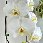 Lumière: Placez votre orchidée dans un endroit bénéficiant d'une lumière vive et indirecte. Évitez la lumière directe du soleil, car elle peut brûler les feuilles. Température: Les orchidées Phalaenopsis préfèrent des températures comprises entre 65-80°F (18-27°C) pendant la journée et légèrement plus fraîches la nuit. Arrosage: Arrosez votre orchidée lorsque le substrat est presque sec. Utilisez de l'eau à température ambiante et évitez que les racines restent dans l'eau. Humidité: Les orchidées prospèrent dans des environnements humides. Vous pouvez augmenter l'humidité en plaçant un humidificateur à proximité ou en posant le pot sur un plateau de galets rempli d'eau. Fertilisation: Utilisez un engrais équilibré pour orchidées une fois par mois pendant la saison de croissance (du printemps au début de l'automne). Réduisez les fertilisations en hiver. Rempotage: Rempotez votre orchidée tous les 1 à 2 ans ou lorsque le substrat se dégrade. Utilisez un mélange de rempotage spécialisé pour orchidées. Circulation de l'air: Assurez une bonne circulation de l'air autour de votre orchidée pour prévenir les infections fongiques et favoriser une croissance saine. Taille: Retirez les feuilles mortes ou jaunissantes ainsi que les hampes florales fanées pour encourager la nouvelle croissance. Avec des soins appropriés, votre orchidée Phalaenopsis peut prospérer et fleurir magnifiquement pendant de nombreuses années à venir