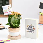 1 Plante de kalanchoé Plantée dans un joli pot 1 Badge préimprimé Merci de m'avoir aidé à grandir 1 Carnet imprimé Meilleur enseignant