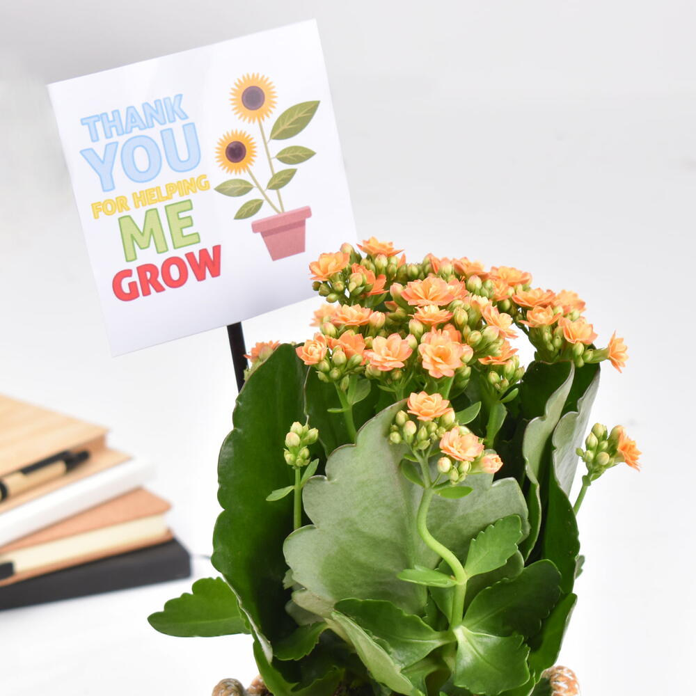 1 Plante de kalanchoé Plantée dans un joli pot 1 Badge préimprimé Merci de m'avoir aidé à grandir 1 Carnet imprimé Meilleur enseignant