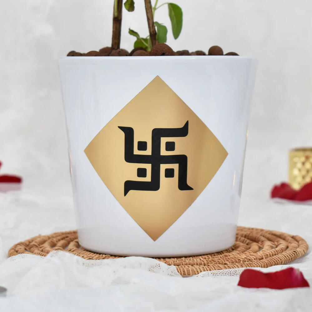 Tulsi plant in White Ceramic Planter