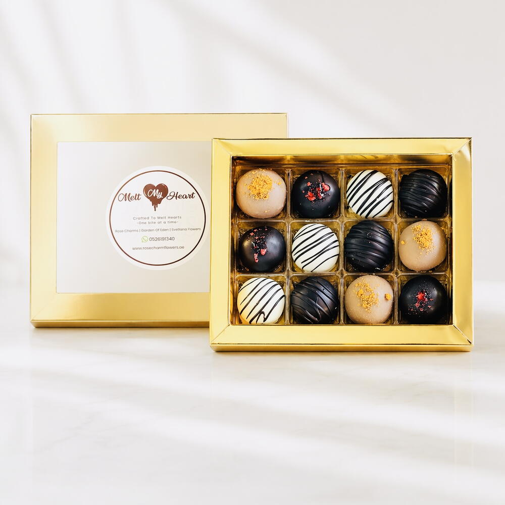 A rich and indulgent set of 12 brownie rolls, crafted as decadent brownie bombs and elegantly packed in a luxurious gold box—perfect for gifting and satisfying every chocolate lover’s craving.