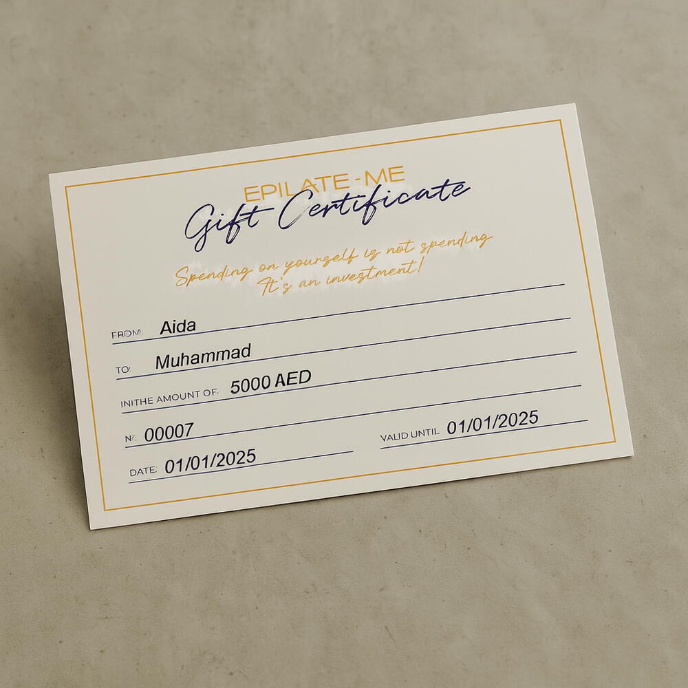 The Epilate Me clinic knows this, which is why we have created the most aethetic reminder - you do not need a special occasion to take care of yourself. Available for all services: cosmetology, laser hair removal, massage, electrolysis. The gift card will be sent to you in electronic format. Please include your email in the order so we can send you the gift card. What you need to know 📅 Validity period: 12 months from the date of purchase. 📍Procedure locations JLT and Business Bay ⚠️ Availability: Experience is subject to change based on clinic updates. 🔄 Exchangeability: The recipient can exchange the voucher for any other experience of equal value. 📆 Booking: Recipient will select preferred procedure upon activation.
