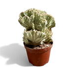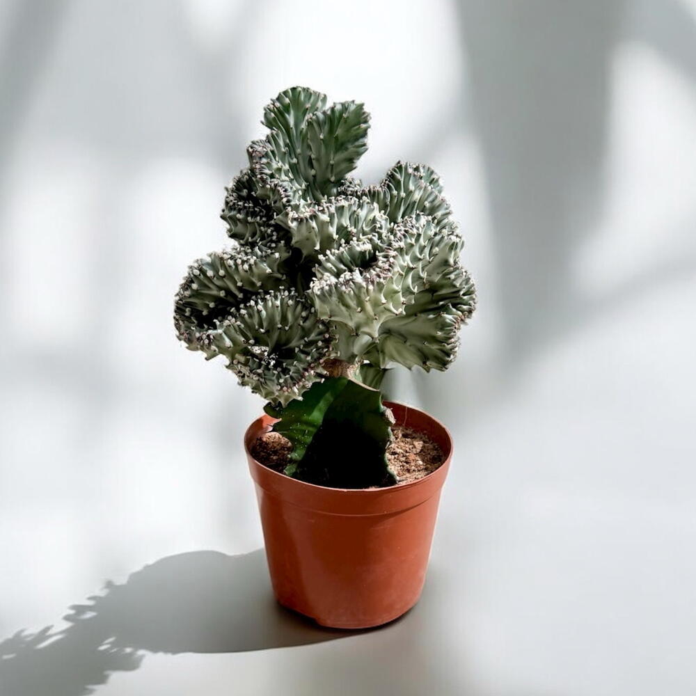 Euphorbia lactea Cristata, also commonly known as a Coral Cactus or Crested Elkhorn. It is a succulent plant that has a unique, fan-shaped structure due to a genetic mutation.