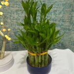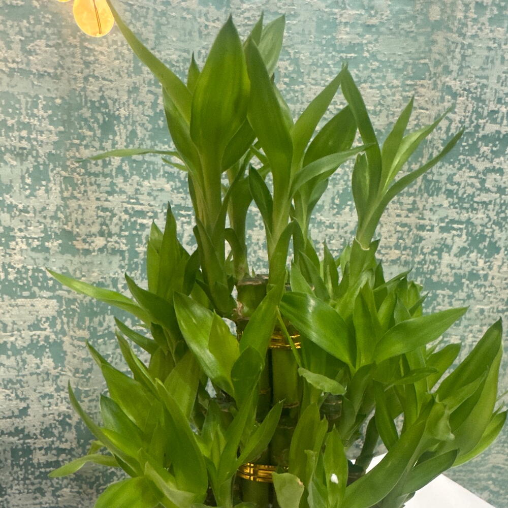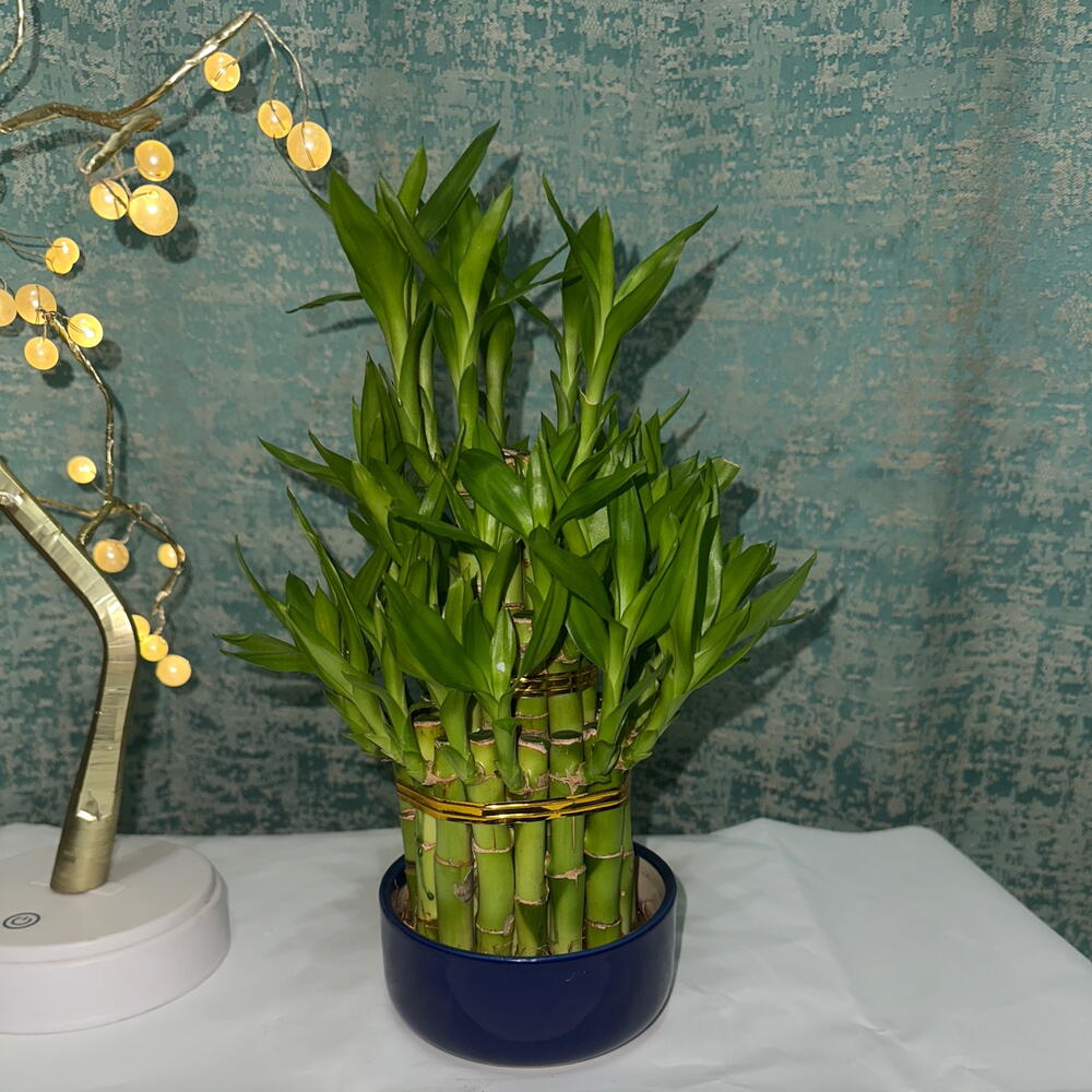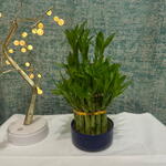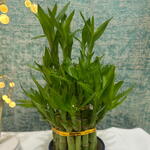 The 3-Tier Lucky Bamboo is a beautifully arranged set of Dracaena sanderiana stalks, stacked in three levels and tied together to create an elegant, compact display. It symbolizes good luck, prosperity, growth, and positive energy, making it a popular choice for homes, offices, and gifting. The vibrant green stalks with fresh new leaves add a refreshing look to any space. This plant thrives in water or soil and is known for being very low-maintenance, suitable even for beginners.
