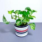 Housed in a bold striped ceramic pot, its an eye-catching choice for desktops, shelves, or countertops. Easy to care for and fast-growing, its ideal for both beginner and experienced plant lovers.