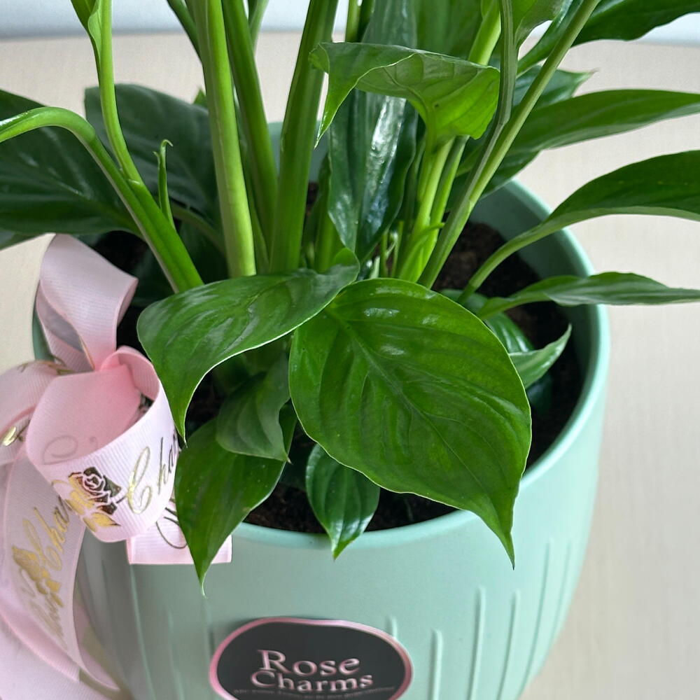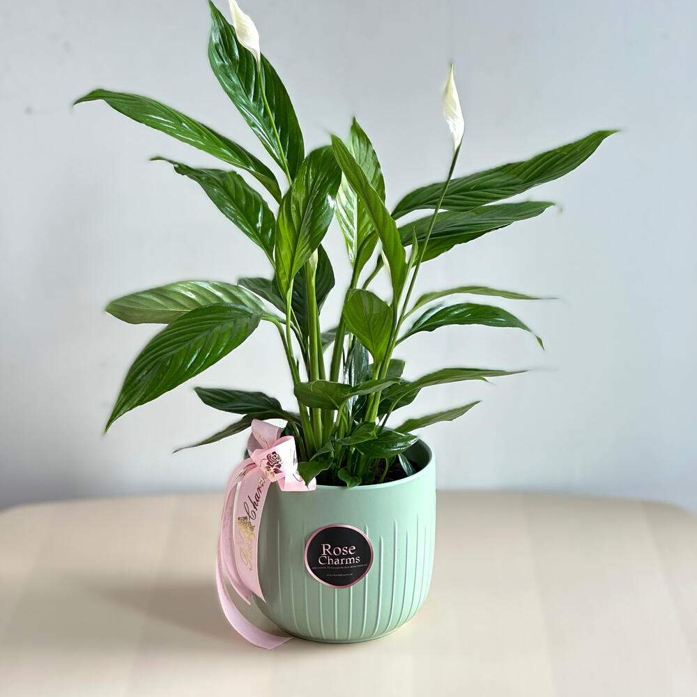 The Peace Lily (Spathiphyllum) is a popular indoor plant known for its elegant white flowers and glossy, dark green leaves. It thrives in low to medium light conditions, making it an ideal choice for indoor environments. Peace Lilies are also known for their air-purifying qualities, removing toxins such as formaldehyde and benzene from the air. They prefer moderate watering, allowing the soil to dry out slightly between waterings. With proper care, Peace Lilies can bloom throughout the year, adding a touch of beauty and serenity to any space.