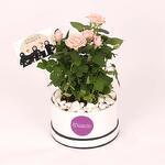 Pink Rose Plant, Arranged in a White Round Box, Decorated with White Stones, Emirati Womens Day Tag.