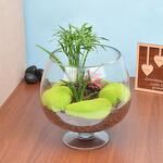 Sanseveria Finger Plant Chamadorea Elegance Plant Fittonia Plant Ball Moss Arranged Beautifully In Glass Vase