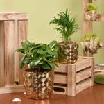 1 Chamadorea Elegance Plant 1 Crassula Ovata Plant Planted in a Golden Design Ceramic Pot Each The combination of Crassula ovata and Chamadorea Elegance plants in a set provides improved indoor air quality and aesthetic appeal.