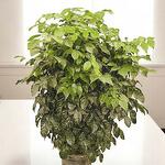 Place in bright, indirect light and keep away from cold drafts. Water when the top 2–3 cm of soil feels dry, avoiding overwatering. Rotate regularly for even growth and prune occasionally to maintain its shape. Prefers moderate humidity and well-draining soil. Avoid moving it too often, as it prefers stability in its environment.