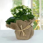 White Kalanchoe Plant Jute Wrapping and Raffia Flowers and plants are the best gift items for any special occasion or event. Order the jute wrapped white Kalanchoe potted plant for your dear ones and make them feel all the more special in a seamless manner. It is truly a perfect pick for your near and dear ones. Note- As per growth stage plants may come with buds or flowers or without any or both
