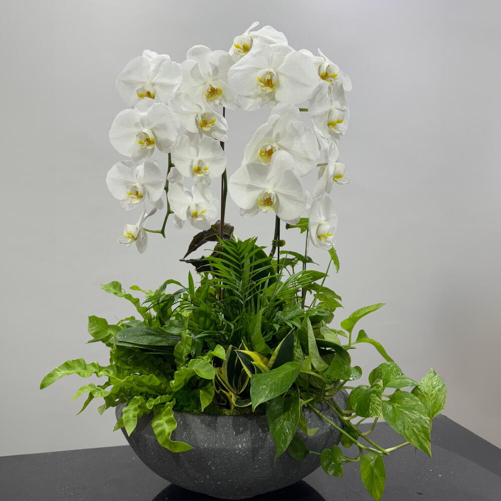 White Phalaenopsis orchids symbolize purity and elegance, often used in religious ceremonies and weddings. These orchids are relatively easy to care for and can re-flower for years with proper care.