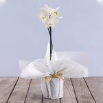 Mini White Orchid Plant in White Wrapping