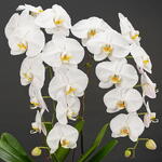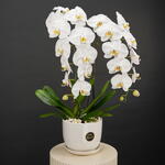 2 stems of white Phalaenopsis orchid plant in a nice white pot