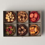 A standard cookie set includes one cookie of each flavor. List of flavors: popcorn cookie, pistachio raspberry cookie, marshmallow cookie, strawberry cookie, peanut cookie, chocolate hazelnut cookie.