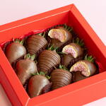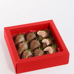В коробке Sara Box — клубника в бельгийском молочном шоколаде, сверху инжир, шоколадные подтеки и золотое сияние. Непринужденная изысканность в каждом укусе.