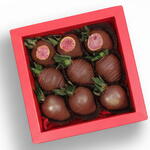 3 клубники в бельгийском молочном шоколаде с золотым блеском 3 клубники в бельгийском молочном шоколаде с шоколадными полосками 3 клубники в бельгийском молочном шоколаде с лиофилизированными инжирами