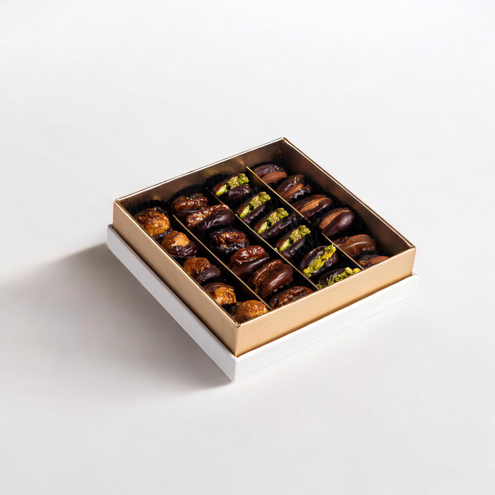 Каждый финик изготовлен вручную, начинён богатыми орехами и изысканными начинками, предлагая восхитительное сочетание сладости, хруста и утончённого вкуса. Идеально для подарка, особых случаев или как небольшое ежедневное удовольствие.