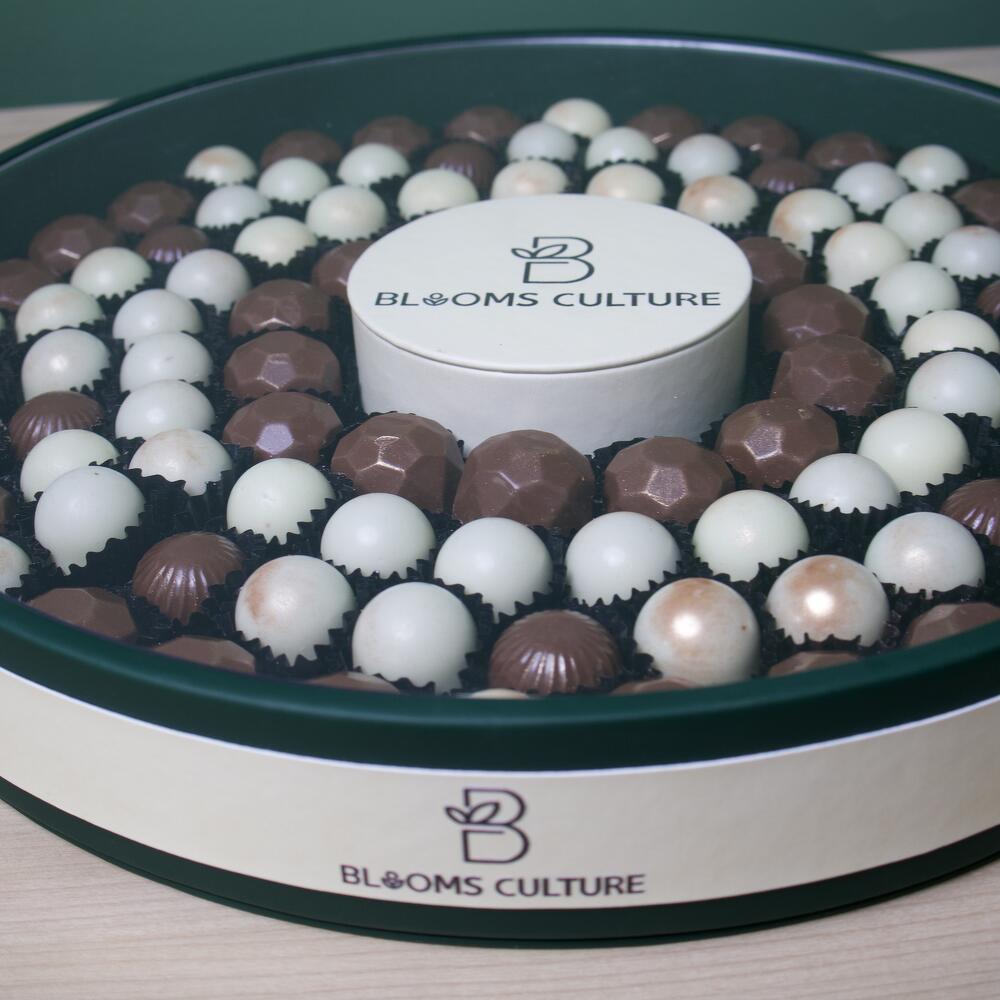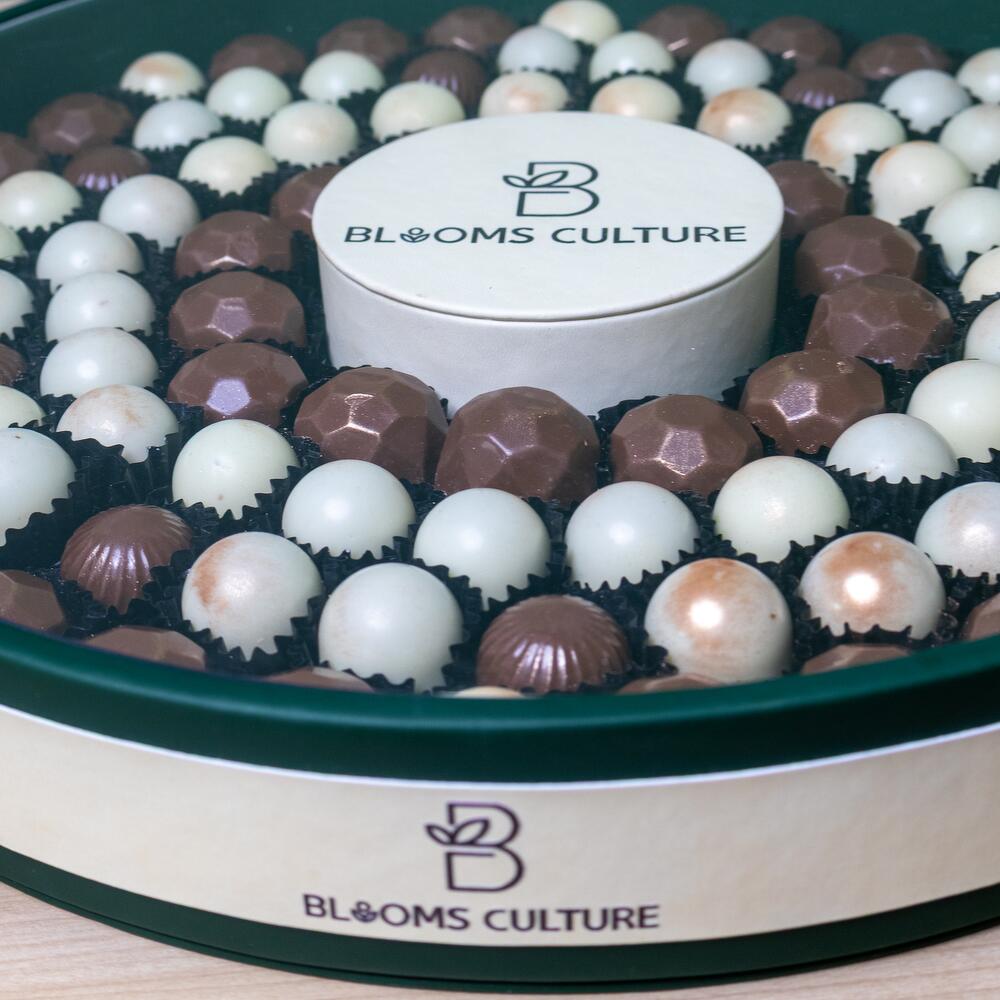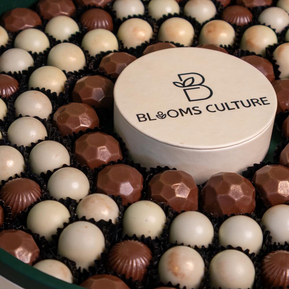 Побалуйте себя неподвластной времени элегантностью настоящих бельгийских шоколадных конфет, красиво представленных в изготовленном вручную кожаном подносе премиум-класса. Каждая конфета искусно изготовлена из высококачественного какао, обладающего гладкой, бархатистой текстурой и неотразимой глубиной вкуса. Роскошный кожаный поднос добавляет изысканности, делая эту композицию идеальной для подарков, торжеств или корпоративных мероприятий. Изысканное лакомство, сочетающее исключительный вкус и безупречную презентацию.