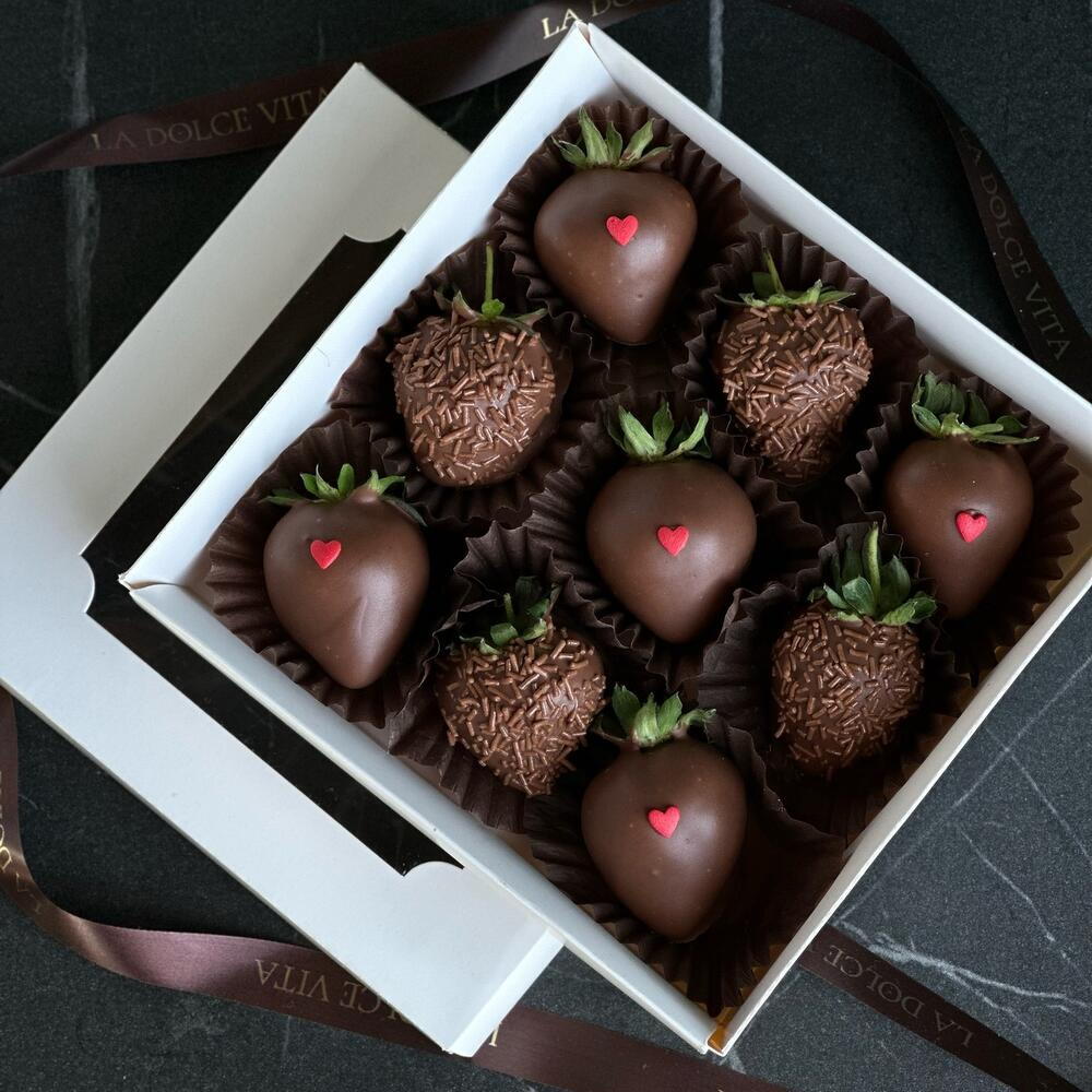 ✔️ Набор клубники в молочном бельгийском шоколаде Callebaut. ✔️ Декор - сердечки (кондитерская посыпка). ✔️Упаковка: подарочная коробка, атласная лента и открытка по желанию или деревянный топпер.