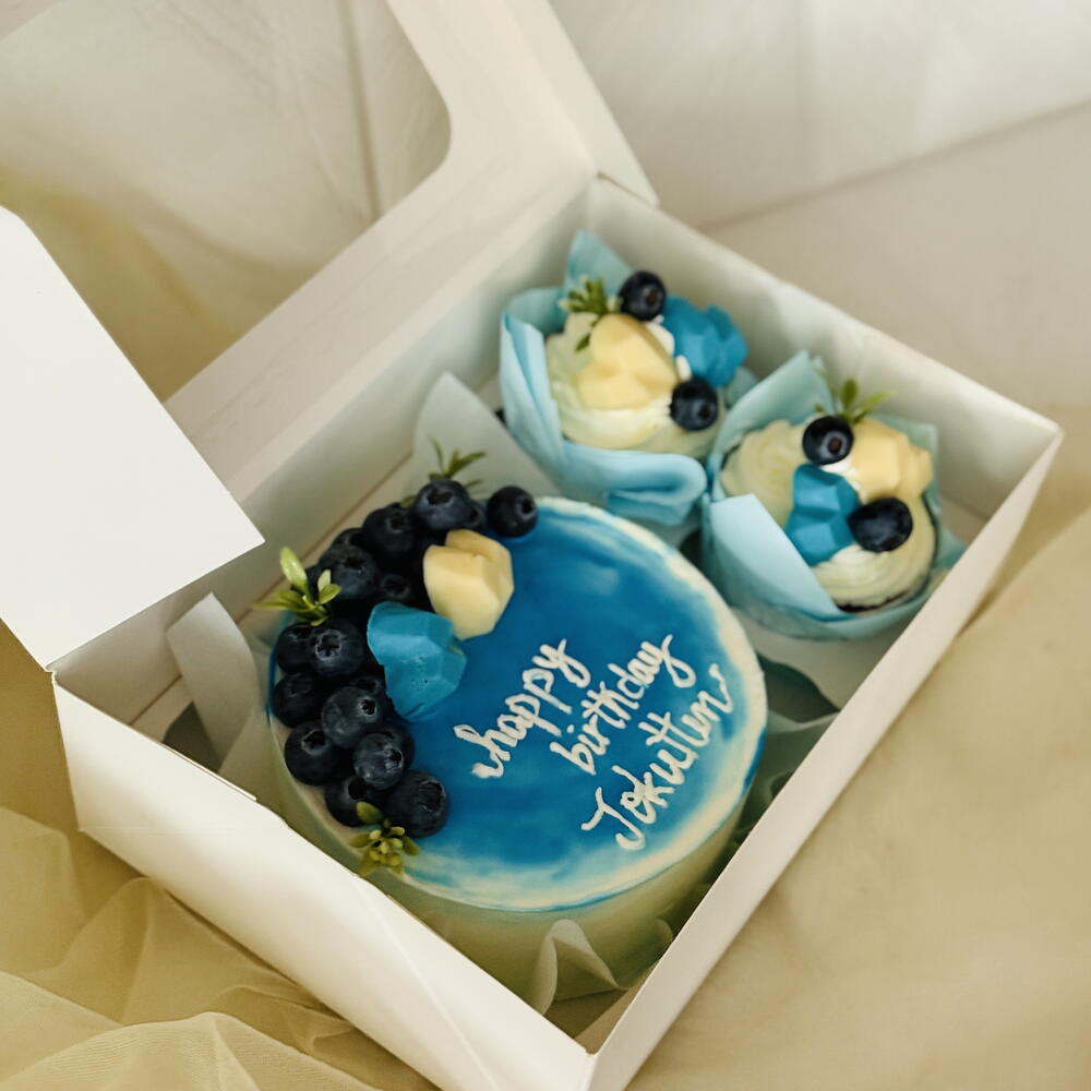 Торт с голубикой и капкейками