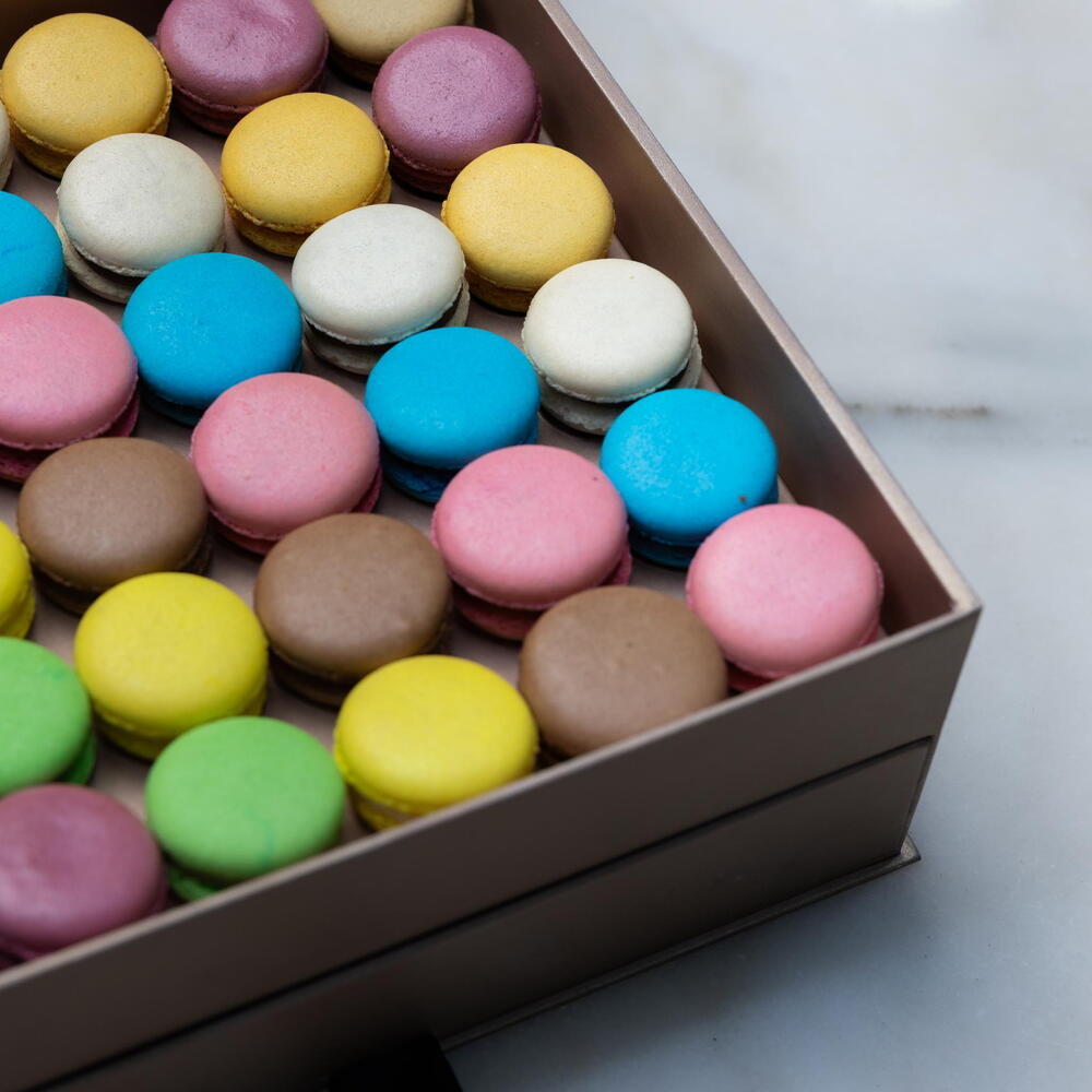 Откройте для себя искусство кондитерского мастерства с этими макарунами ручной работы. Приготовленные из миндальной муки, сахара и яичных белков, эти лакомства порадуют ваши вкусовые рецепторы разнообразием вкусов. Побалуйте себя нашими неотразимыми вкусами: шоколад, ваниль, фисташка, клубника, солёная карамель, малина, манго, черника, кофе и лимон. Кроме того, все наши макаруны без глютена. Погрузитесь в мир французских лакомств и наслаждайтесь нашими макарунами, восхитительно лёгкими и нежными.