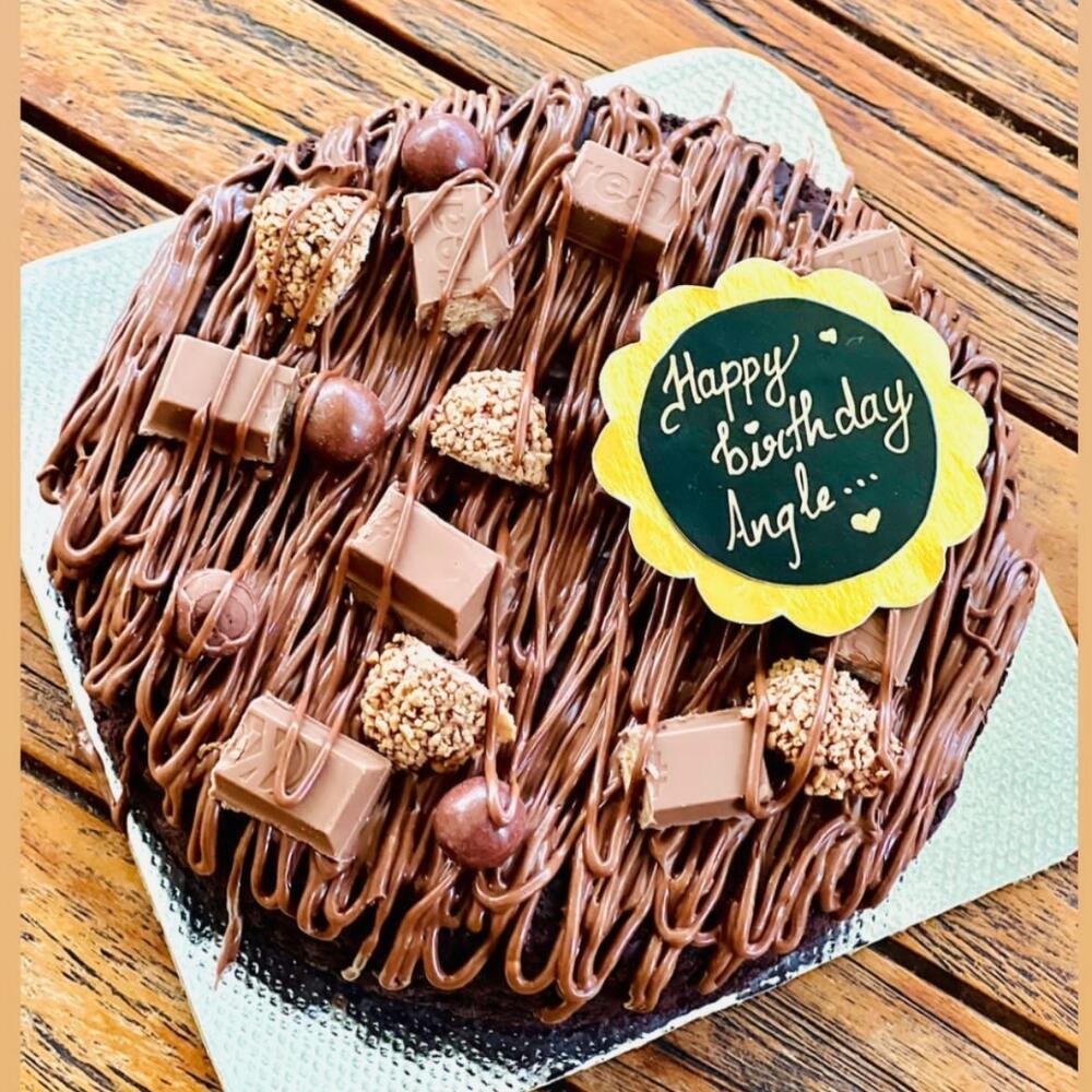 Это шоколадный брауни с помадкой. Это запеченный шоколадный десерт. Это самый воздушный брауни, какой только можно себе представить. Идеальная хрустящая корочка, супер-воздушная серединка, влажный и тягучий во всех кусочках. Он покрыт слоем Нутеллы и шоколадными кусочками, такими как Киткат и Киндершоты, чтобы сделать брауни еще вкуснее и красивее. Это идеальный брауни-торт в подарок кому-то особенному🤎
