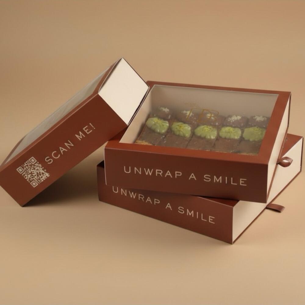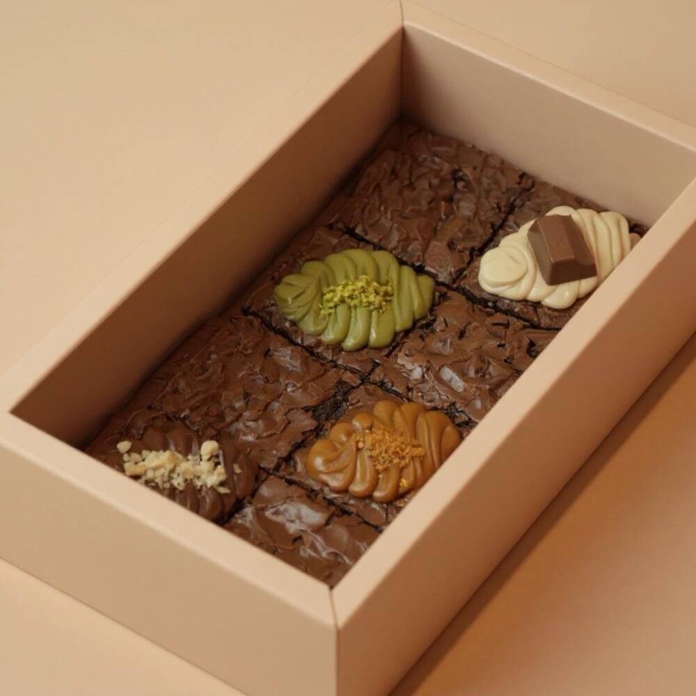 Коробка из 8 брауни Идеально для компании | Примерно 800 г Роскошный ассортимент насыщенных, нежных брауни с фисташковой начинкой, шоколадной глазурью Lotus, Nutella, Kinder Bueno или классической помадкой на ваш выбор. Смешивайте и сочетайте любимые начинки. Просто укажите в комментариях, сколько каждой начинки вы хотите. Сладкое лакомство, которое удовлетворит любые ваши желания!