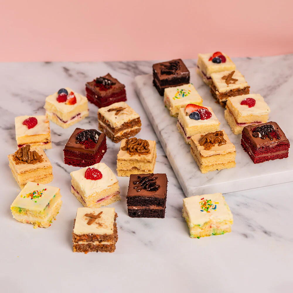 Ваши любимые пирожные теперь в идеальном размере! От фруктовых и сливочных до ореховых, кофейных, шоколадных, ванильных и с конфетти — эти маленькие лакомства найдут что-то для каждого. Идеально порционные и продаются набором из 20 штук, они идеально подходят для того, чтобы поделиться (или оставить всё себе!).