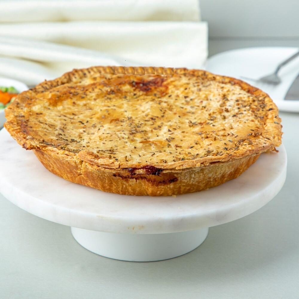Кремовый классический куриный пирог с грибами, морковью и горошком! 8-дюймовый на 6-8 человек. Изображение в меню для 8-дюймового пирога.