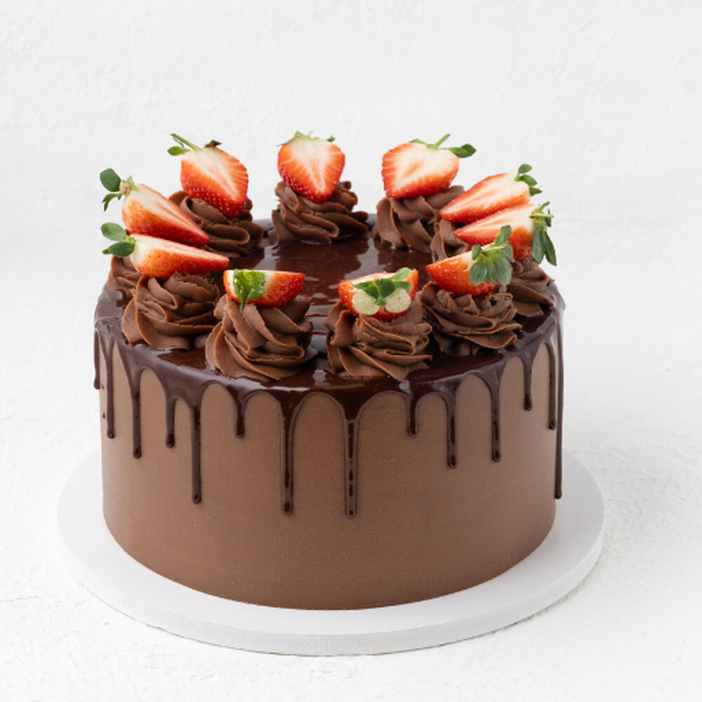 Идеальное сочетание шоколада и клубники уже здесь! Наш шоколадно-клубничный торт — идеальный баланс насыщенного шоколадного бисквита и полутёмного шоколадного ганаша, наполненного свежими ломтиками клубники.