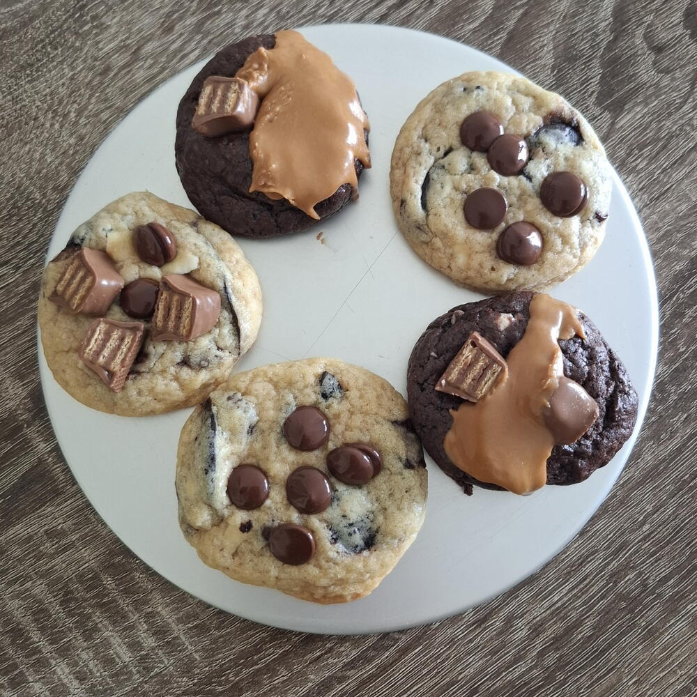 Соблазните свои вкусовые рецепторы нашей классической линейкой печенья Приготовлено из ингредиентов высшего качества Доступно в ассортименте вкусов С шоколадной крошкой Мягкие и тягучие Двойной шоколад Покрыты вкусным топпингом, включая шоколад, солёную карамель, Lotus, белый шоколад, M&M's и многое другое