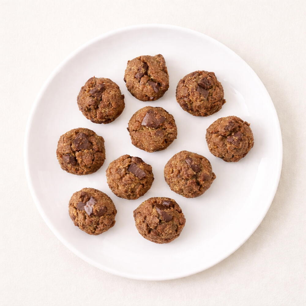 Эти безглютеновые лакомства подслащены кокосовым сахаром и не содержат молочных продуктов, яиц и каких-либо добавок. Свежевыпеченные, с кусочками тёмного шоколада и полные вкуса. Без вредных добавок и абсолютно безопасны для детей. (10-11 шт.)